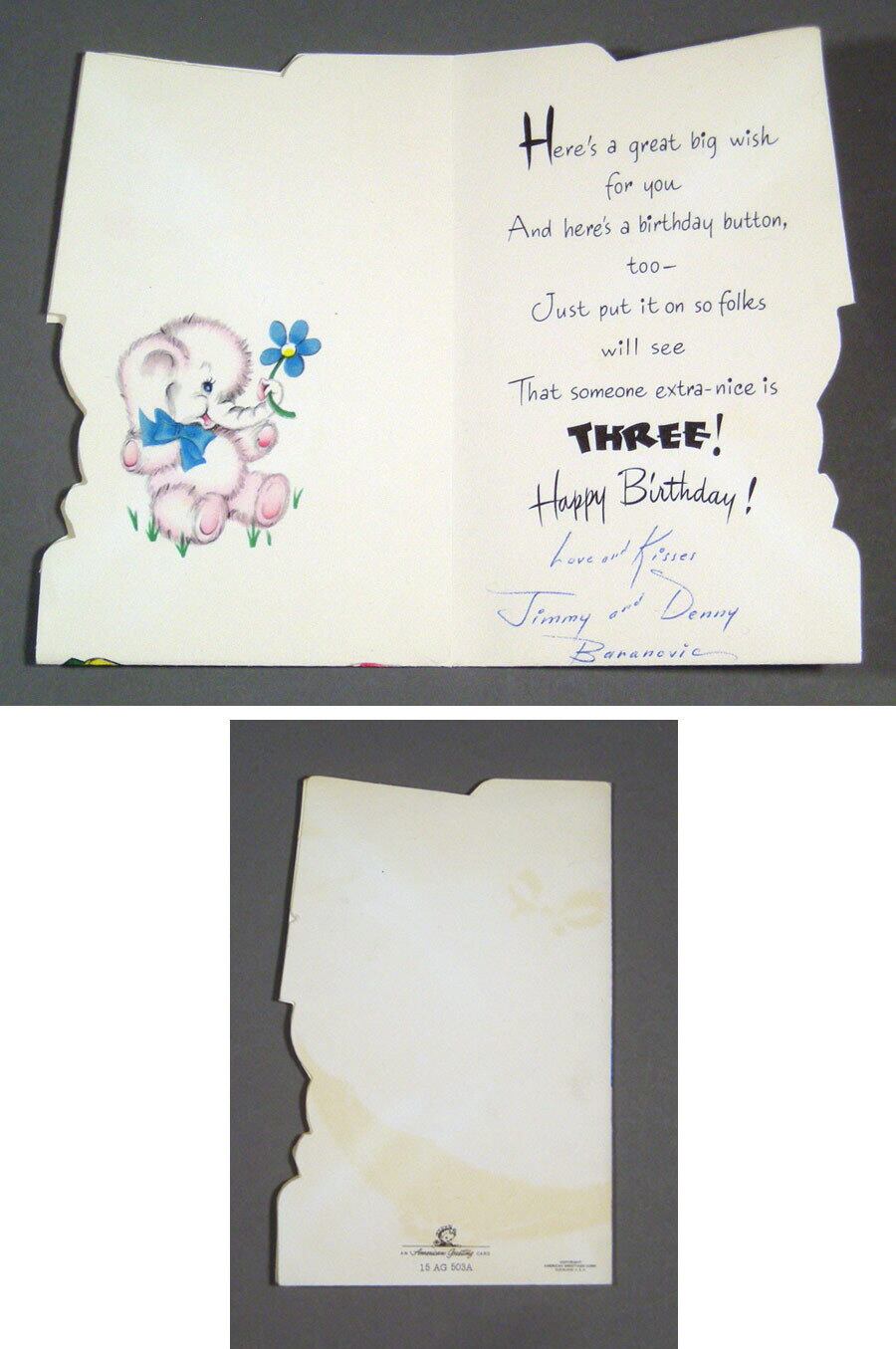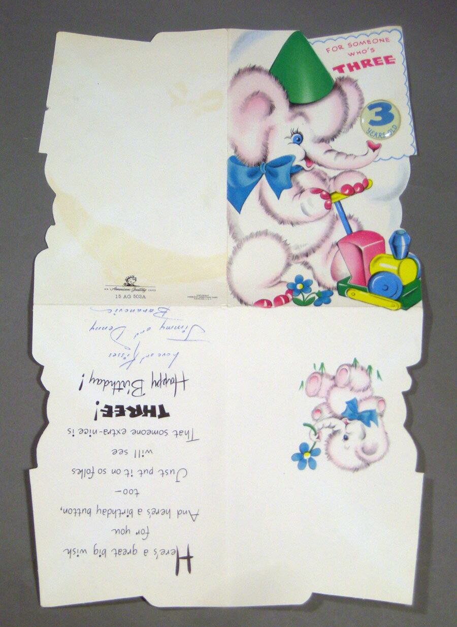 "FOR SOMEONE WHO'S THREE" ピンクのぞうさん 3歳 お誕生日 ヴィンテージカード