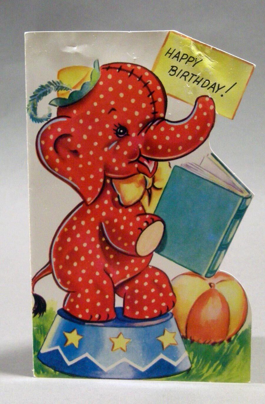 1950年代 "HAPPY BIRTHDAY" 水玉ゾウさん お誕生日 ヴィンテージカード