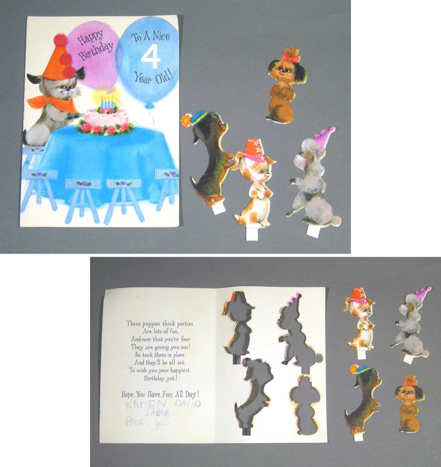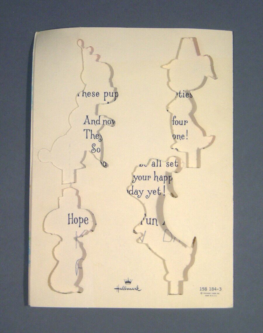 犬の切り抜きを表にさして完成させるタイプのヴィンテージ・バースディカードです。