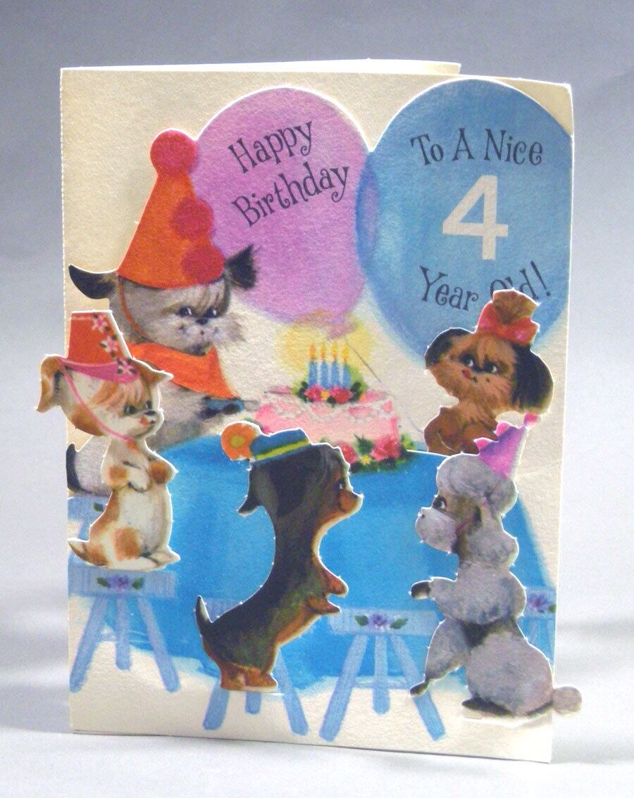 "To A Nice 4 Year Old!" 4匹の犬 4歳 お誕生日 ヴィンテージカード
