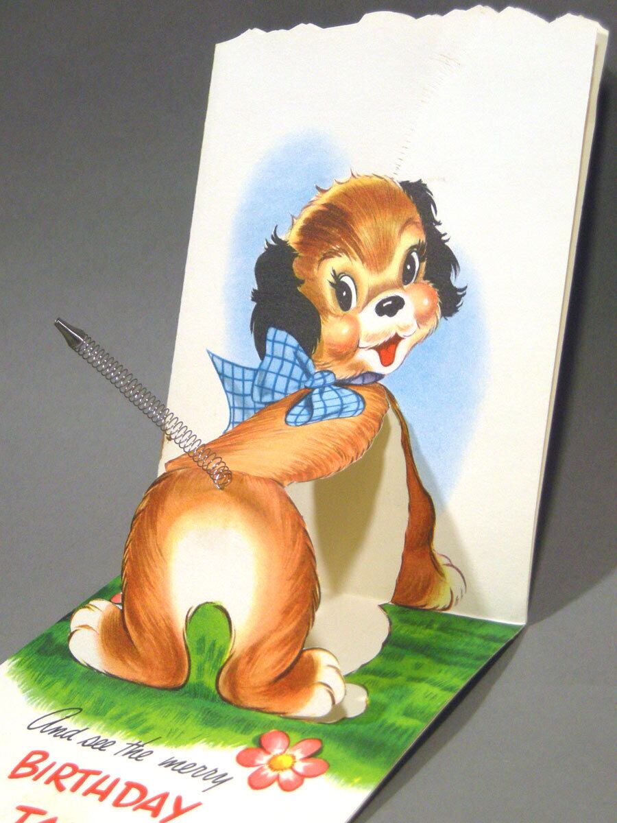 開けると、バネのシッポが飛び出す立体的なヴィンテージ・バースデーカードです。