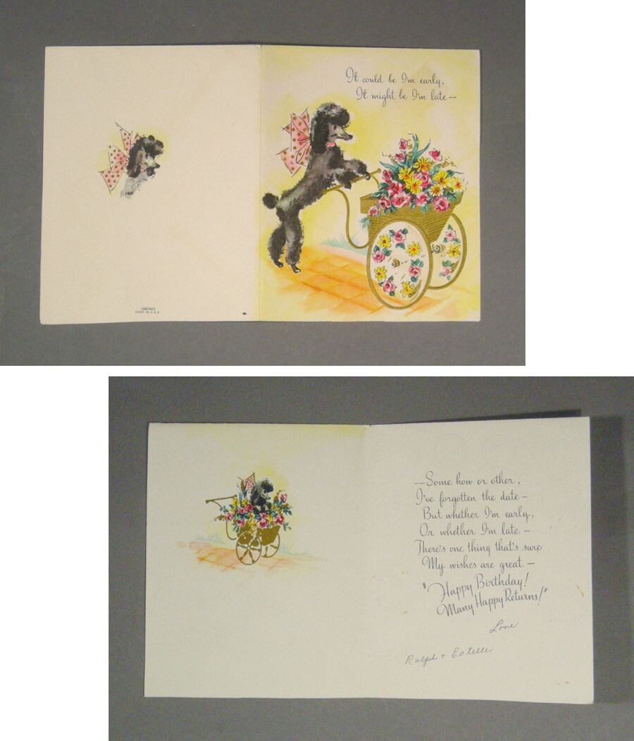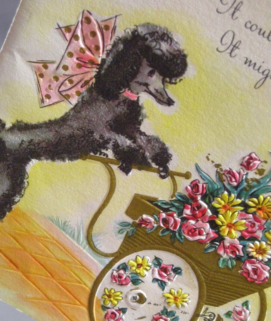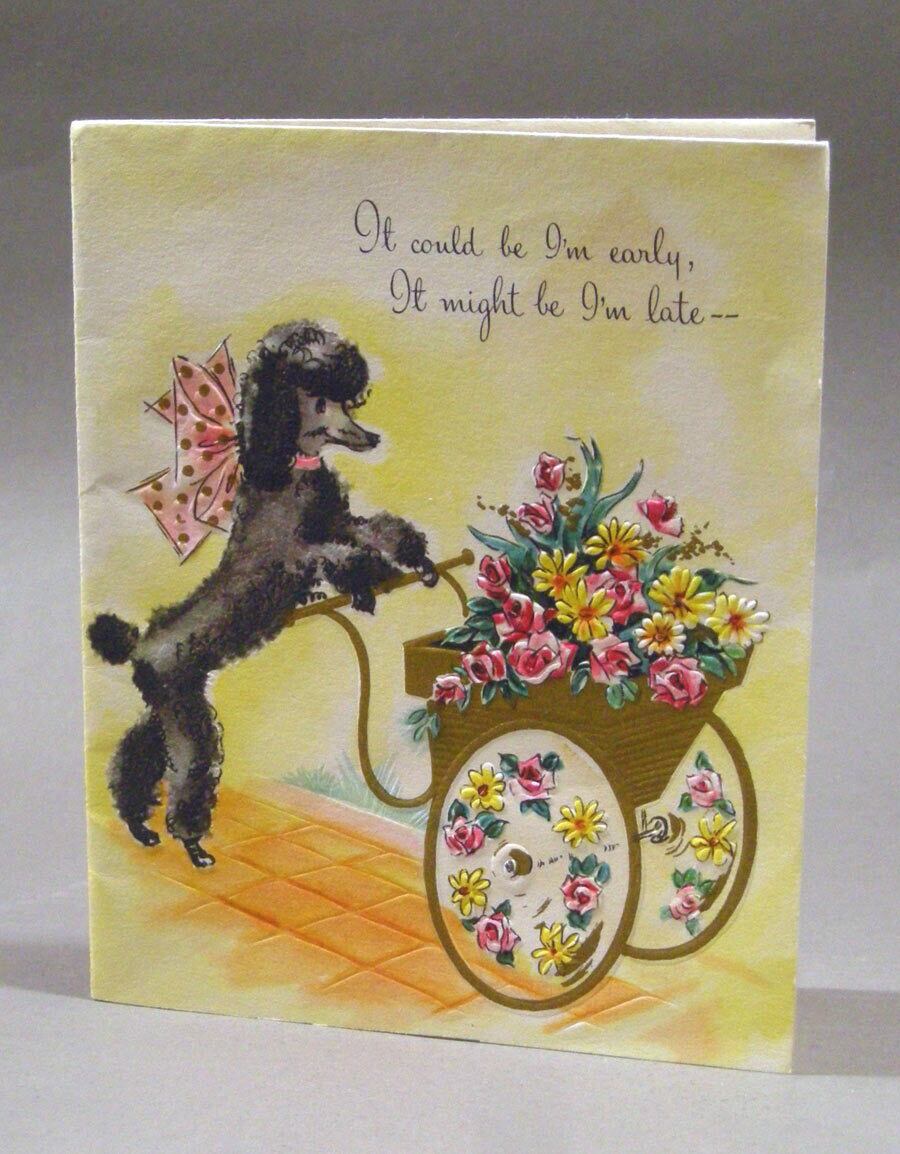 "FLOWER CART POODLE" 花籠 ブラック プードル お誕生日 ヴィンテージカード
