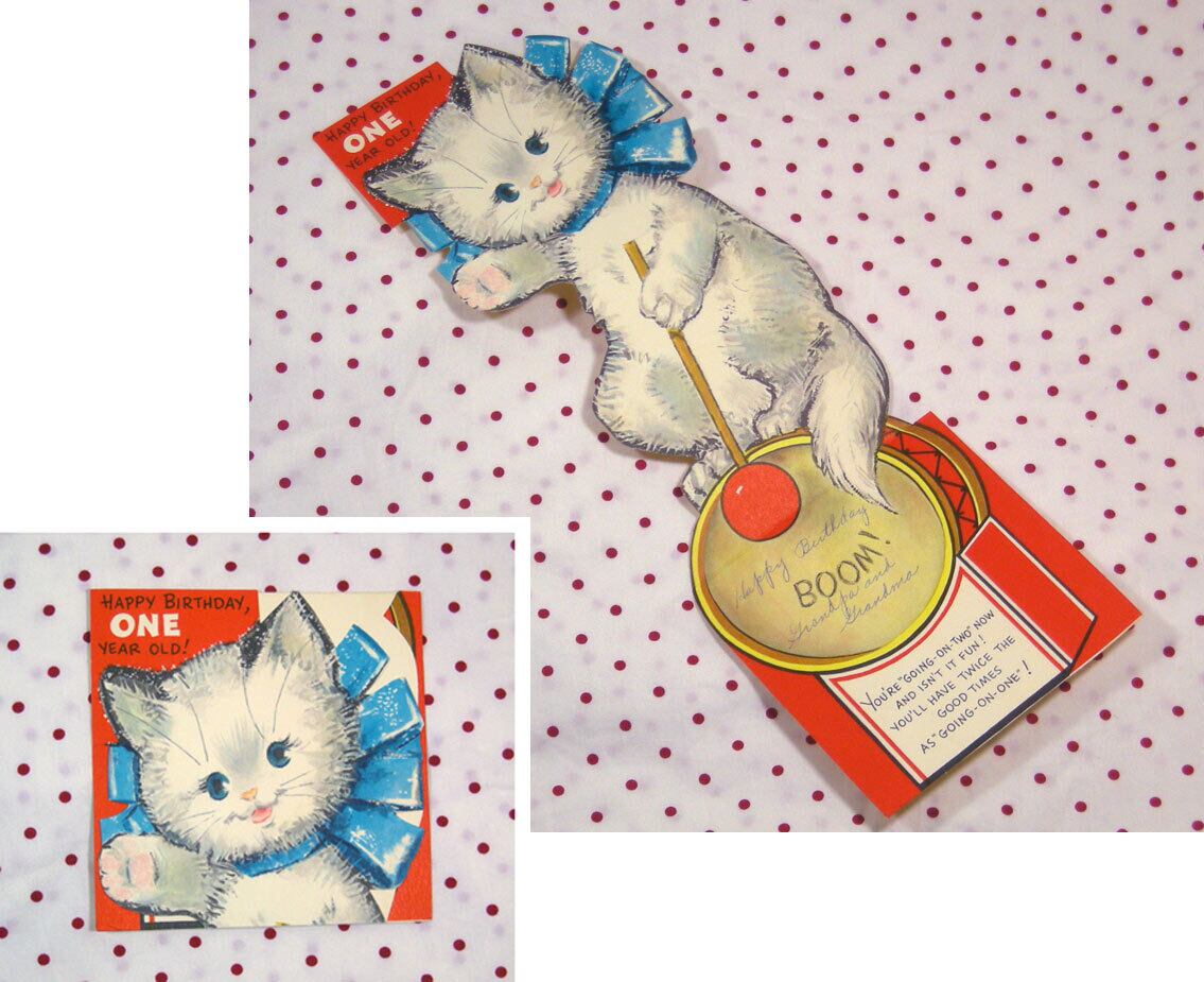 "HAPPY BIRTHDAY,ONE YEAR OLD" 1歳 お誕生日 子猫 ヴィンテージカード