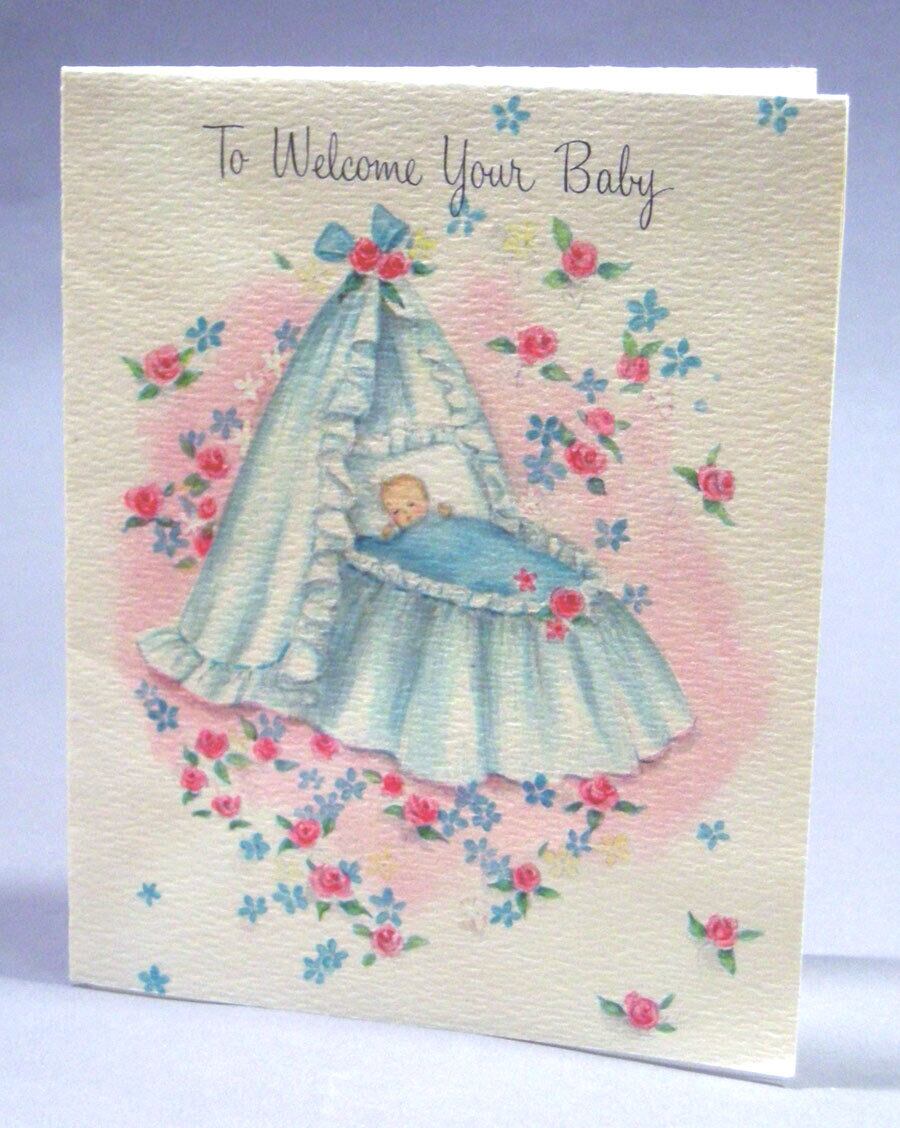 "To Welcome Your Baby" 出産祝い ベビーベッド ヴィンテージカードCARD