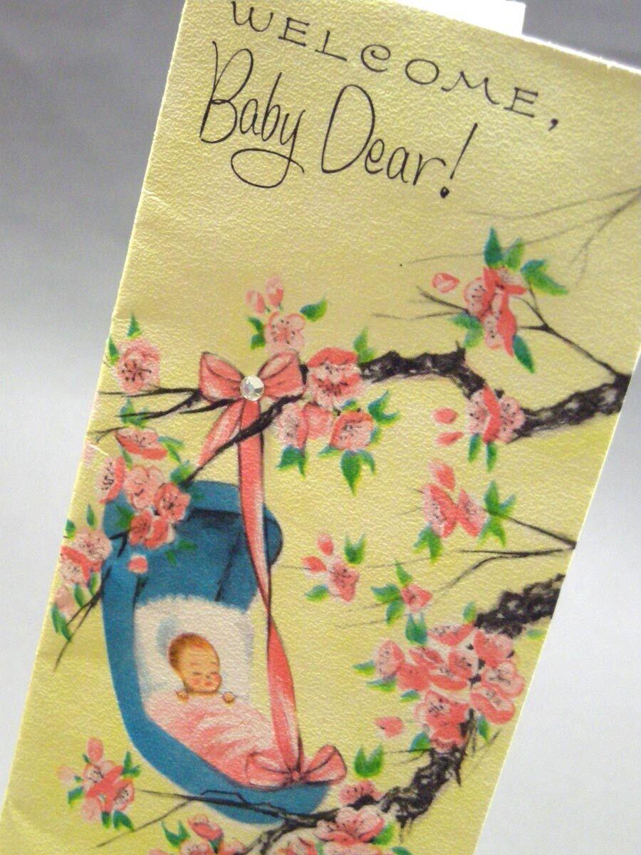 "WELCOME.Baby Dear!" 出産祝い ラインストーン付き ヴィンテージカード