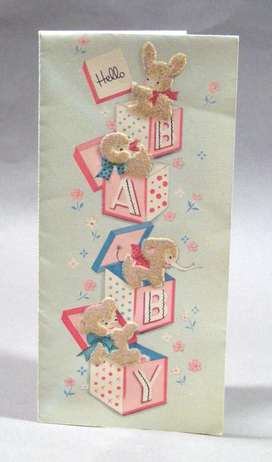 "Hello BABY" 出産祝い ベビーブロック ヴィンテージカード