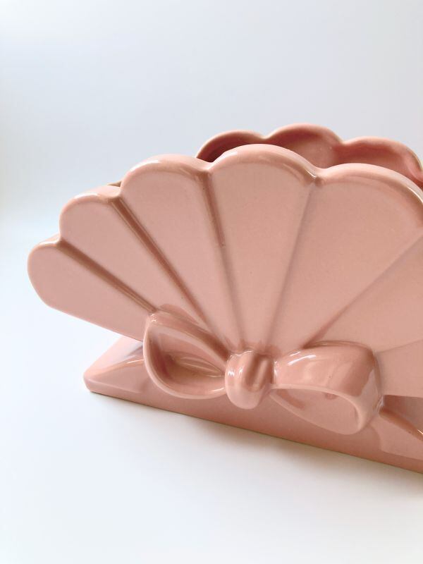 1940's -ヴィンテージ シェル型&リボン 花瓶 フラワーベース- Vintage ABINGDON "Shell & Bow" Flower Vase 【PINK】