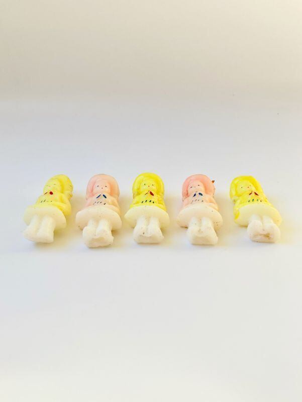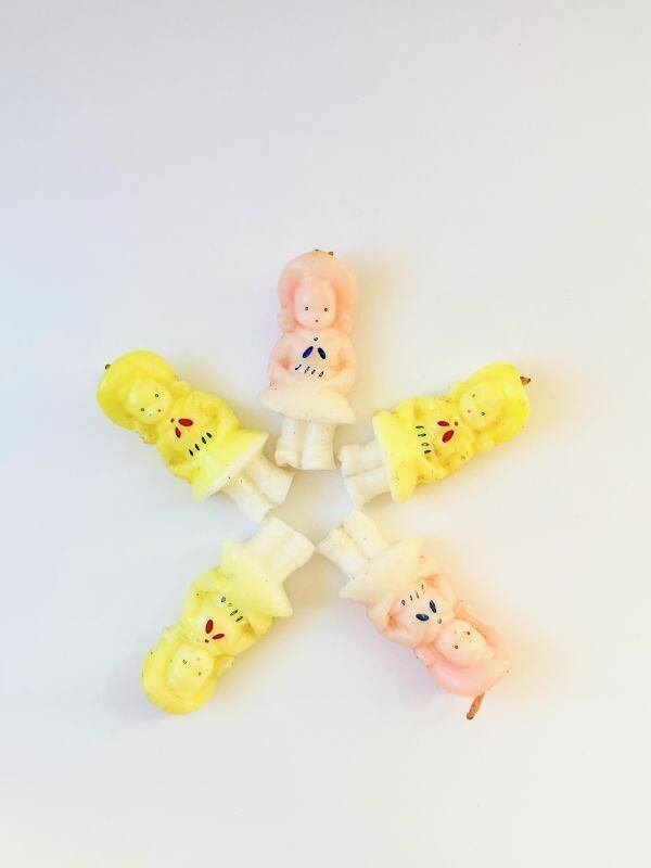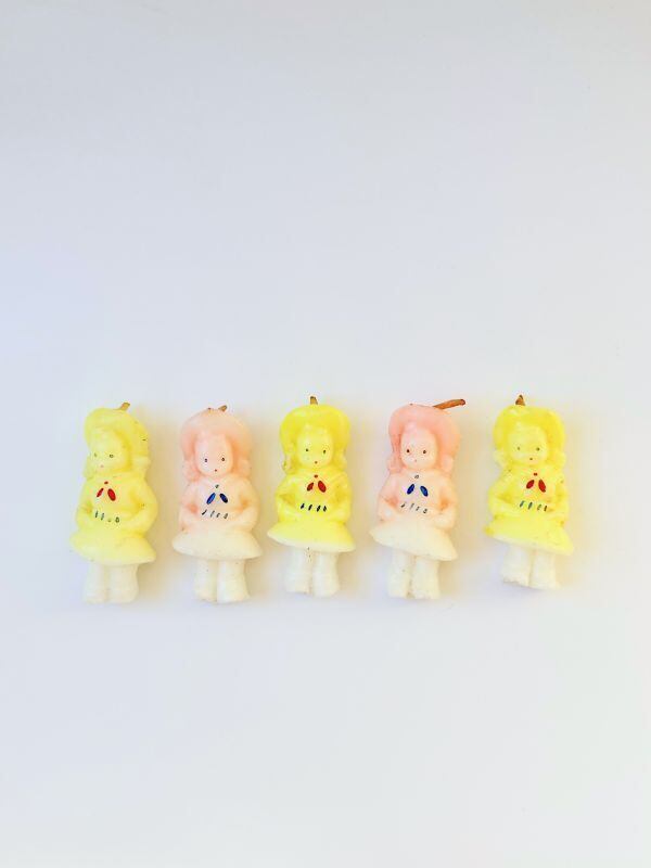Pink Doll 2体・Yellow Doll 3体 計5体セットのバースディ・キャンドルです。