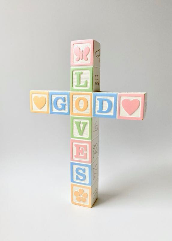 Vintage -ヴィンテージ ウォールデコレーション 十字架- "GOD LOVES" Baby Block Cross