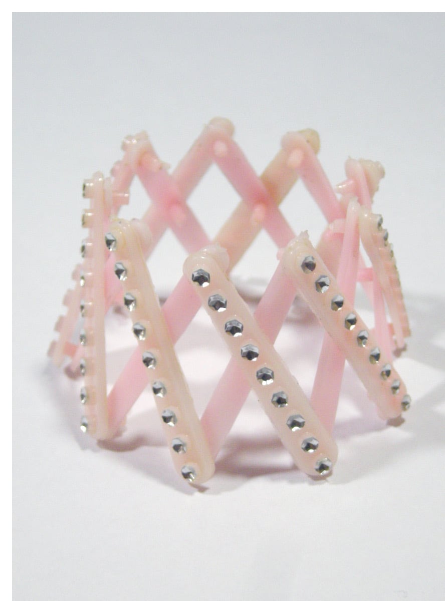 ベビーピンクにキラキラの装飾が施された華やかな50'sヴィンテージの髪飾りです。