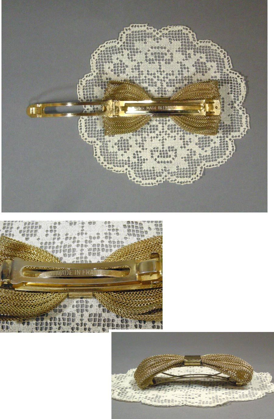 【フランス製】-ヴィンテージリボンバレッタ-Vintage Bow Hair Barrett :GOLD: