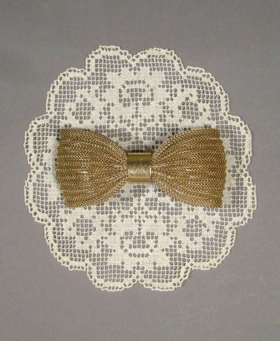 細かいチェーンが重なったようなデザインの金属を(実際はすべて繋がっています)リボン型に形成して作られたヴィンテージ ヘアバレッタです。