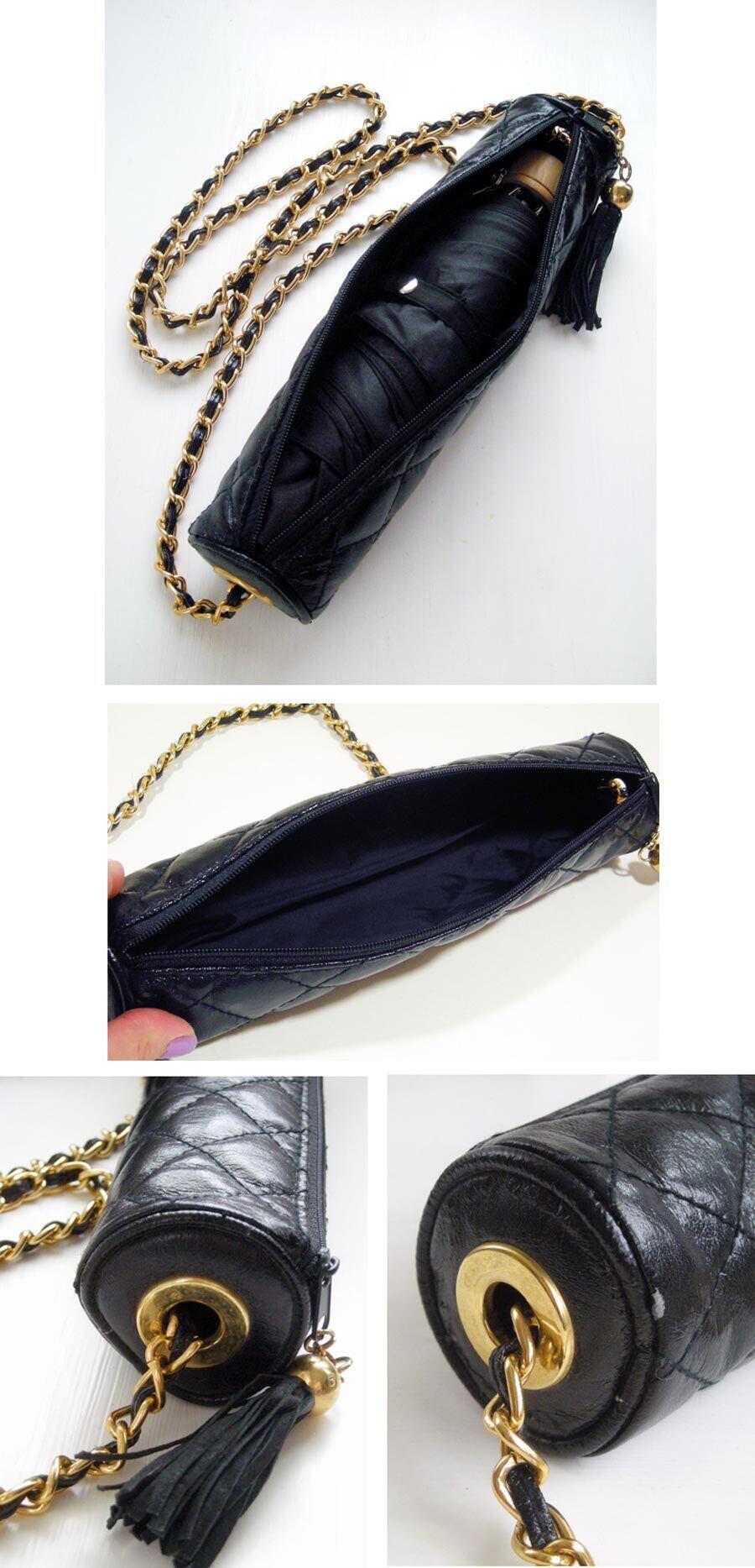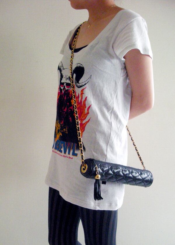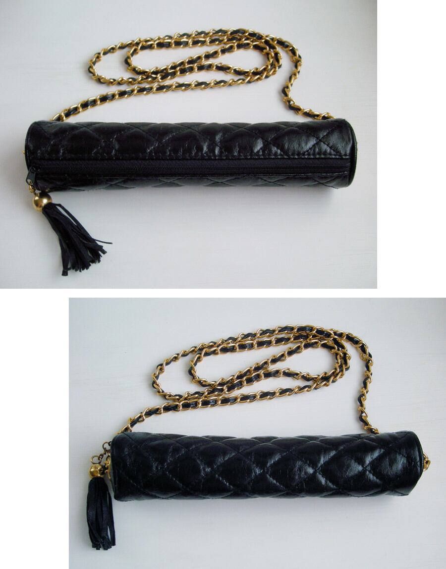 1980's -ヴィンテージ キルティングチェーンバッグ- "BLACK×GOLD" Quilted Tube Bag with Tassel