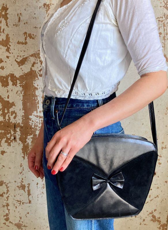 1980’s -ヴィンテージ レザー&スエード リボンショルダーバッグ-Vintage "Black Bow" Shoulder Bag