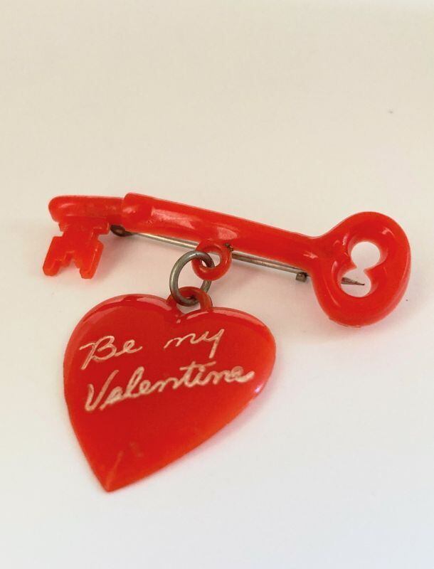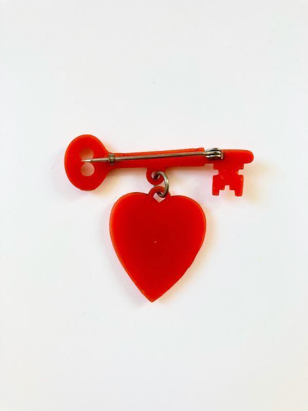 1940-50's -ヴィンテージ バレンタイン ハートキーブローチ- Vintage "Be my Valentine" Red Heart Brooch