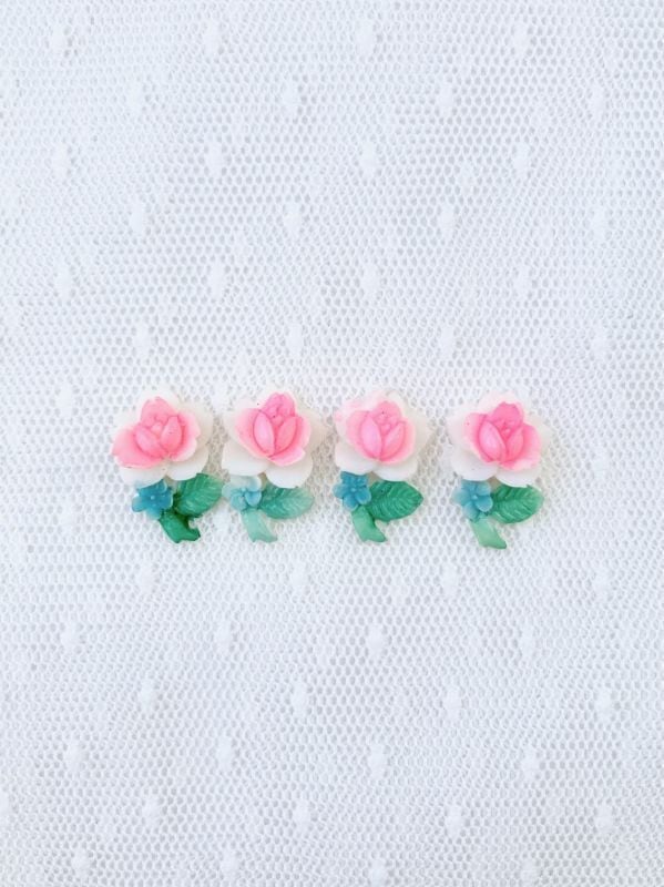 1950's Vintage "ROSE" ヴィンテージ カボション アクセサリーパーツ【4個set】