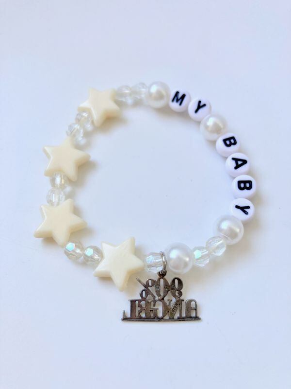 ビーズと合わせてオリジナルでブレスレットを作りました。