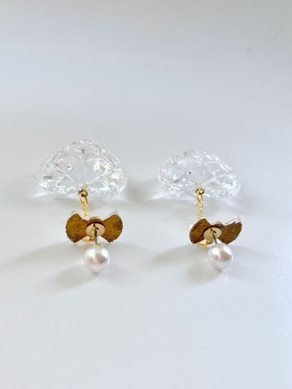 【Little Hideaway】Vintage Parts "クリスタルリボン&キルティングハート" -ピアス-