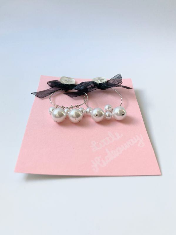 キラキラのシルバーフープを5粒のパールでボリュームアップ!!