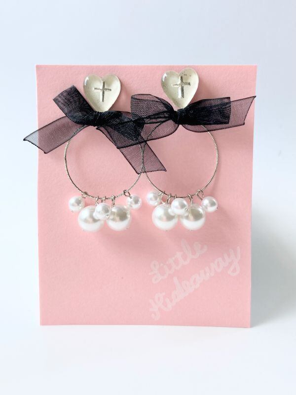 【Little Hideaway】Vintage "CROSS MY HEART" Glass Parts -ハート・リボン・パール フープピアス-