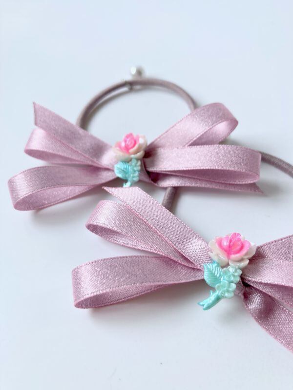 【Little Hideaway】Vintage Cabochon "ROSE" Parts -リボン ヘアゴム 2個set-
