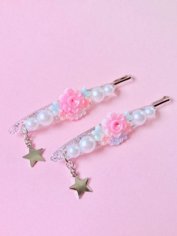 【Little Hideaway】Vintage Cabochon "PEARL FLOWER" Parts -パール✖️星 ヘアピン-