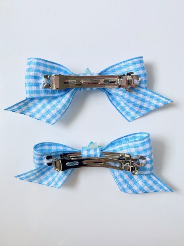 【Little Hideaway】Vintage Bow & 1950's "STAR FLOWER" -ブルーギンガム リボンバレッタ-【2点SET】